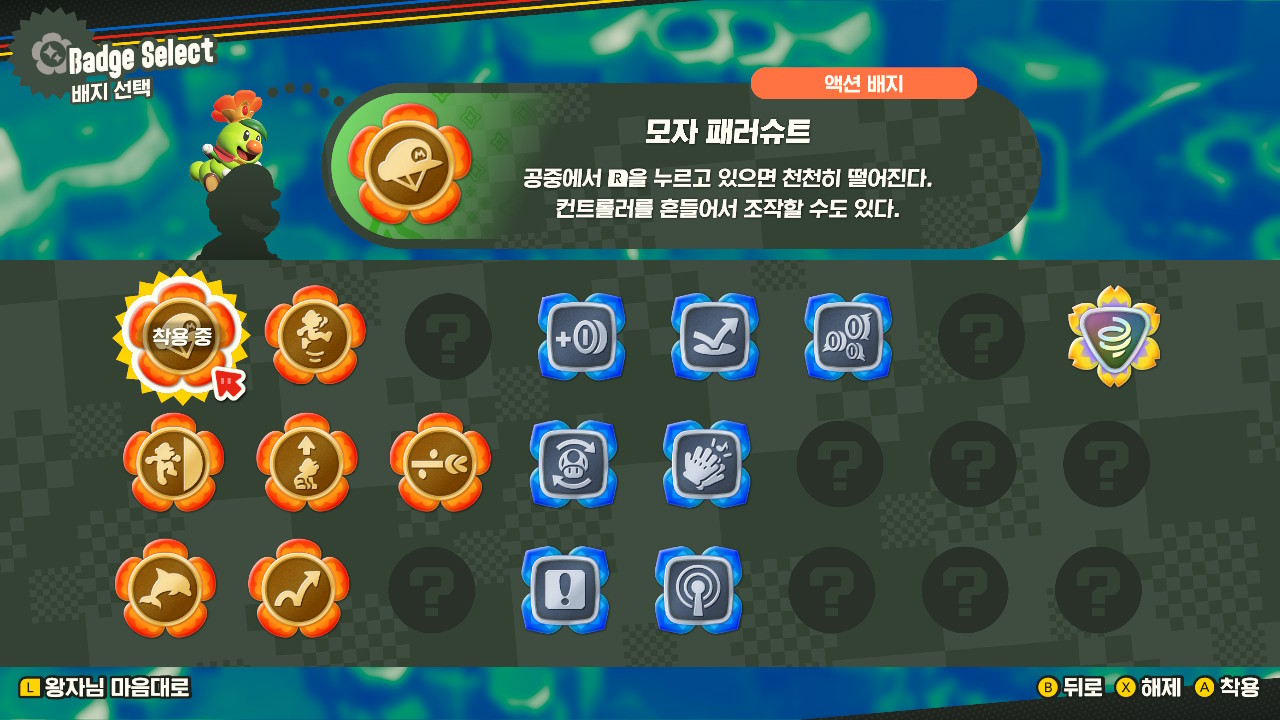 작년에 발매한 슈퍼마리오 브라더스 원더. 아쥬 익숙하고 친숙한 고전 슈퍼마리오 횡스크롤 방식의 게임이다. 스위치 게임에는 마리오 게임이 많지만 횡스크롤은 오래간만인 것 같다.